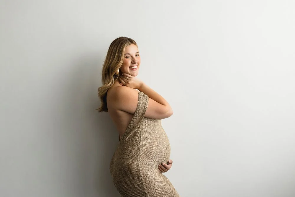 At this stage, your bump is clearly visible, but you’re still likely to feel comfortable enough to relax into the session. That said, there’s no strict rule – the timing should feel right for you.