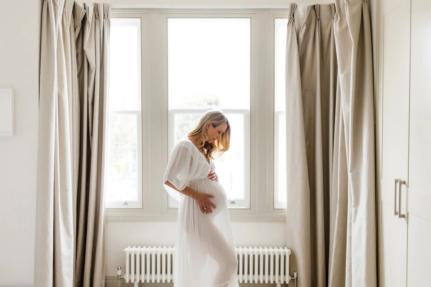 Most maternity sessions take place in my natural light studio in South Wimbledon (SW19), a calm, private space designed to feel comfortable and unhurried.